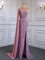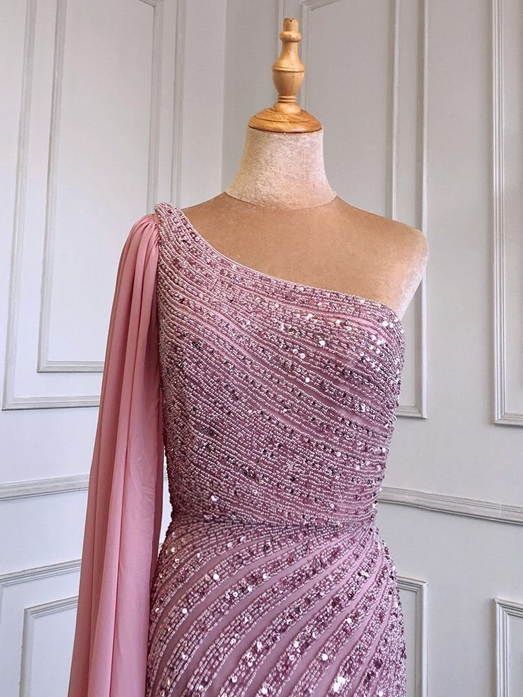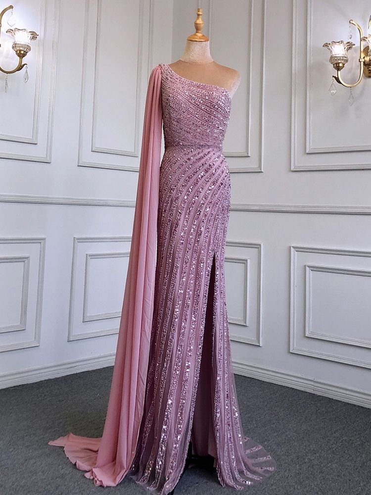 Hearbobo Wholesale Sequin Prom Dresses – Pink One-Shoulder High-end Slim Fit Slit Bridal Gown Elegant Hostess Evening Dress LA71708